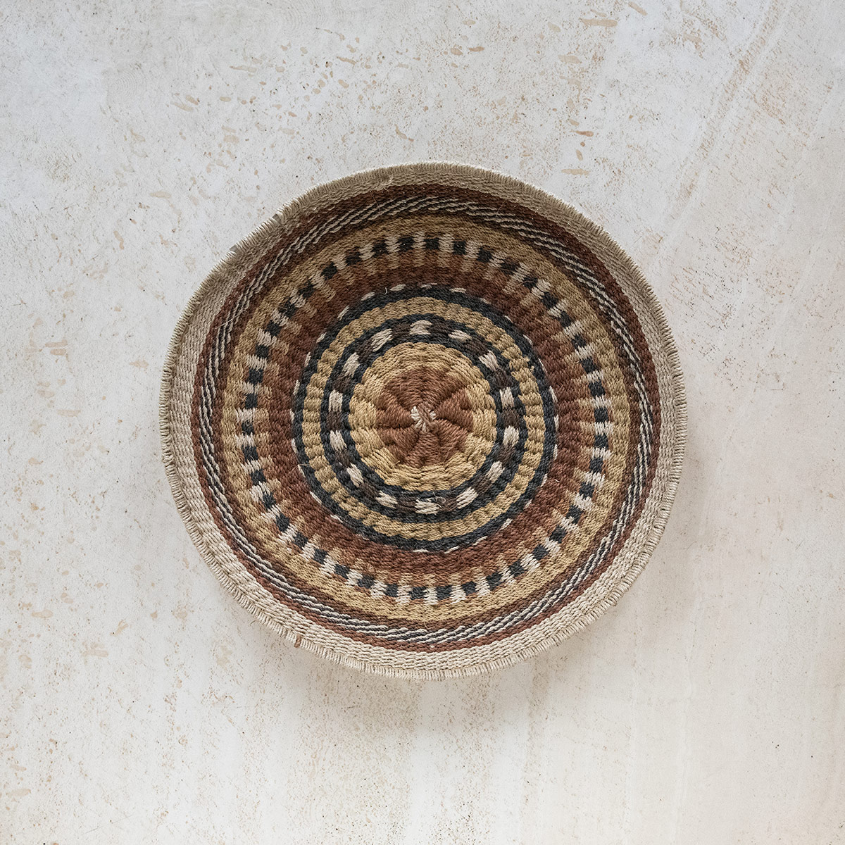 Handmade et colorée, adoptez cette magnifique corbeille ethnique L Celia 1. Elle est l’ouvrage de nos artisans partenaires situés au nord de l’Argentine. Réalisé en fibres végétales, on apprécie les couleurs naturelles ainsi que les motifs graphiques de ce panier mural.