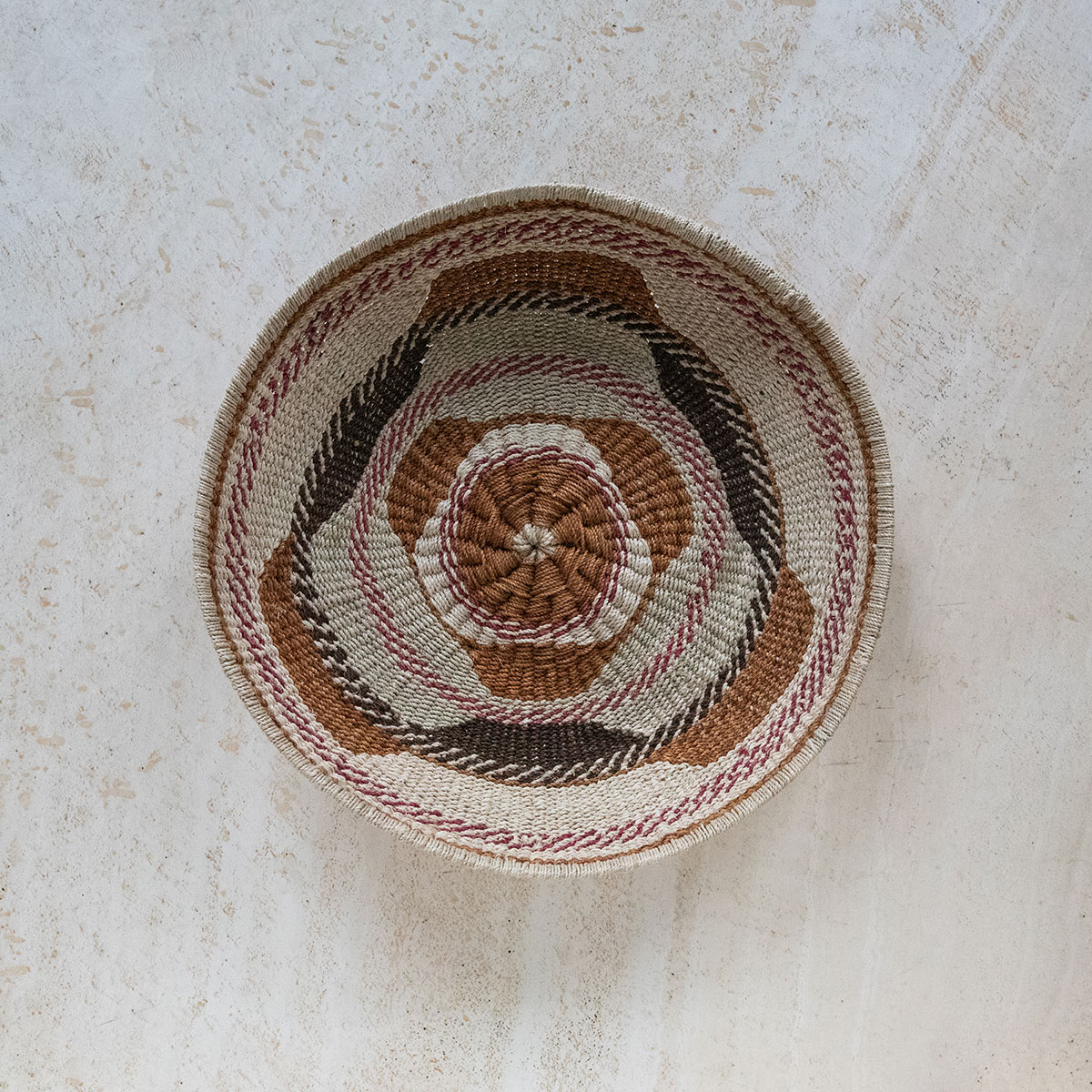 Cap au nord de l’Argentine pour découvrir la communauté Wichí. Celle-ci rassemble des artisans aux mains expertes. Depuis toujours, ils imaginent et façonnent des accessoires mais aussi des objets de décoration. Ils travaillent le chaguar, une plante typique d’Amérique latine. Ils la récoltent puis la transforment en fibres. Ces dernières sont ensuite tressées manuellement. Les couleurs sont garanties sans produit chimique. Les Wichís recueillent des graines, des fruits ou encore des écorces afin d’obtenir des pigments colorés. Ainsi, notre corbeille ethnique M Mirna illustre joliment ce savoir-faire ancestral. On apprécie ses teintes douces ainsi que les motifs qui la composent. Sur un mur blanc ou coloré, elle offre une touche originale et lumineuse. Elle se suspend seule, à trois ou bien en bouquet. En associant plusieurs paniers muraux, vous créez votre propre composition. Mixez les couleurs et les tailles pour un tableau moderne et dynamique. Et pour une ambiance dépaysante et tropicale, accordez le tout avec l’un de nos masques à tête d’animaux : perroquet, toucan ou encore félin.