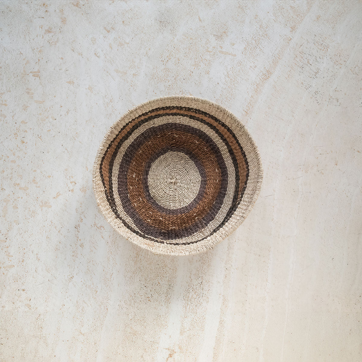 C’est au nord de l’Argentine qu’il faut se rendre pour découvrir le savoir-faire de la communauté Wichí. Ces artisans travaillent depuis toujours le chaguar, une plante similaire à l’aloe vera. À partir de cette matière première, ils façonnent des objets de décoration mais aussi des accessoires de mode. Chaque étape de fabrication se fait manuellement. Ils récoltent la plante, la préparent puis la tressent artisanalement. Les couleurs sont, quant à elles, obtenues à l’aide de pigments naturels. Fruits, écorces ou encore graines entrent dans la composition des teintures. Avec ces coloris doux, notre corbeille ethnique S Belomina reflète parfaitement cet art traditionnel. Ornée de motifs graphiques et géométriques, elle apporte une touche authentique et bohème à votre intérieur. Originale et également tendance, elle égaye et réchauffe instantanément les murs. Dans un salon, vous pouvez imaginez une composition regroupant plusieurs paniers muraux. Ainsi, vous créez un ensemble harmonieux où le voyage et le dépaysement s’invitent. Et pour apporter une pointe d’exotisme, pourquoi ne pas l’associer à l’un de nos trophées à tête d’animaux ?