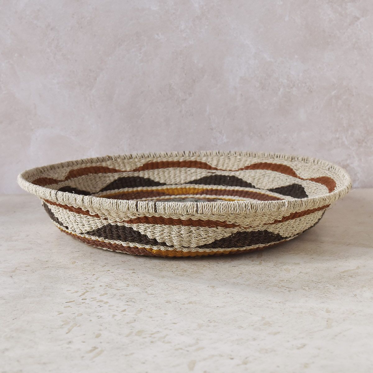 Direction le nord de l’Argentine pour partir à la rencontre de la communauté Wichí. Au sein de celle-ci, des artisans experts en tressage façonnent de leurs mains des objets de décoration et des accessoires de mode. Leur matière de prédilection reste le chaguar, une plante typique d’Amérique du sud. De celle-ci, ils en extraient des fibres pour ensuite les tresser. Les teintures s’élaborent naturellement à partir d’éléments organiques tels que des graines, fruits ou encore écorces. Ils utilisent des techniques artisanales et transmettent leur savoir-faire de génération en génération. Cet art traditionnel se reflète ainsi à travers cette jolie corbeille ethnique XL Elsa. On craque pour ses teintes chaleureuses et douces. Elle est ornée de motifs géométriques invitant au voyage. Disposée sur un mur blanc ou coloré, elle réchauffe instantanément votre intérieur. Vous pouvez la suspendre seule ou bien l’assortir avec d’autres paniers muraux. En mixant les tailles et les couleurs, vous obtiendrez une composition moderne et dynamique. Elle sera également du plus bel effet au côté d’un trophée en bois. Félins, toucans ou encore oiseaux : pour une décoration exotique et originale.