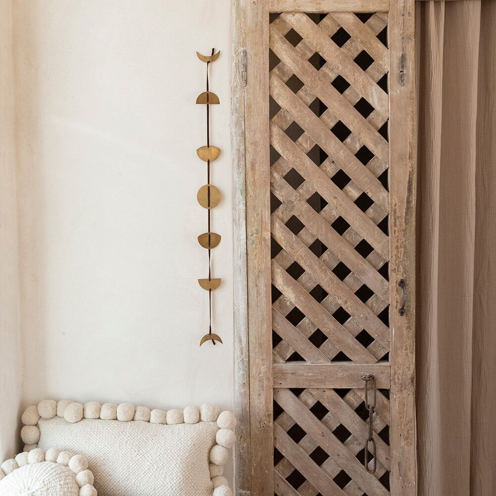 D’une longueur de 90cm, cette guirlande lune en laiton se compose de 7 pièces géométriques, mesurant 7cm de large. Chacune d’elle symbolise ainsi une phase lunaire. Les éléments de ce mobile sont joliment répartis sur une cordelette. Facile à suspendre, vous pouvez installer votre guirlande lune en métal dans toutes les pièces de votre maison. Elle sera par exemple du plus bel effet dans l’encadrure d’une porte ou encore suspendue à côté de votre lit. Idéal pour apporter une touche boho, ce véritable bijou mural illumine votre intérieur et vous propose également un voyage empreint de magie.