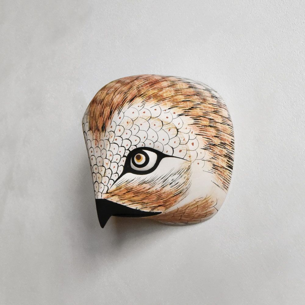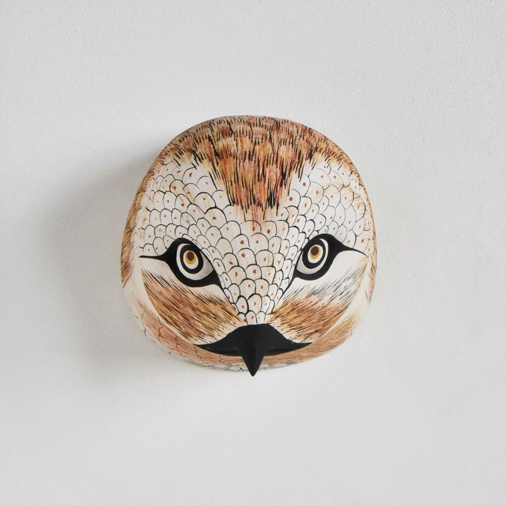 En quête de produits d’exception, nous sommes partis à la découverte du savoir-faire des artisans Chané. Cette communauté située dans le nord de l’Argentine imagine et crée depuis des générations des masques en bois à tête d’animaux. Récolte de la matière première, façonnage et décor pictural : ils maîtrisent l’ensemble du processus de fabrication. Traditionnellement utilisés lors de cérémonies festives, ces trophées de chasse modernes s’intègrent désormais au sein de votre foyer. Ce masque chouette hulotte en bois habille de manière originale le mur de votre chambre à coucher, de votre salon ou encore de votre entrée. Symbolisant la sagesse, cet animal à l’allure un brin nonchalante et au regard bienveillant gardera un oeil attendrissant sur vous. On apprécie particulièrement le plumage minutieusement détaillé de ce trophée mural ainsi que la palette de couleurs sobres et naturelles. Pour une décoration surprenante, nous vous invitons à mixer plusieurs animaux en bois. De cette façon, vous imaginez un tableau mural sauvage et spectaculaire où de majestueux oiseaux côtoient de superbes félins.