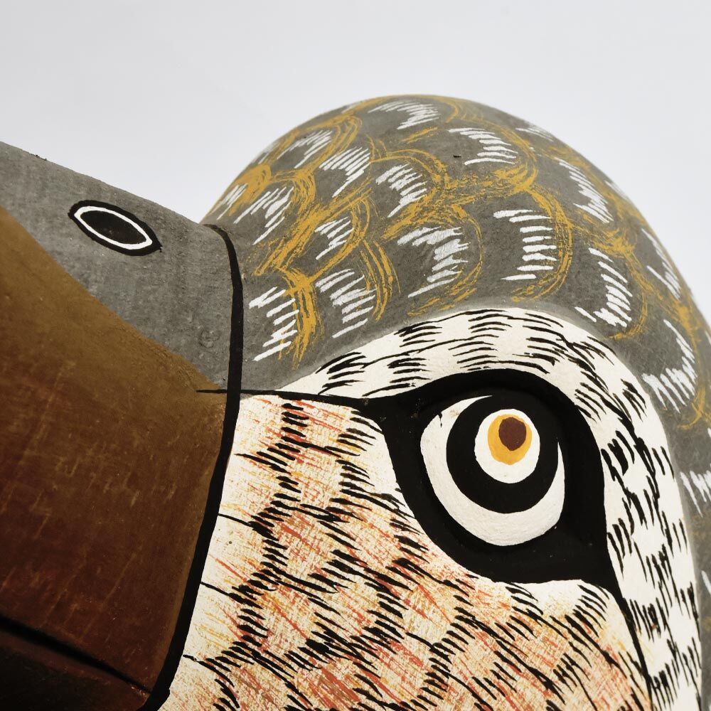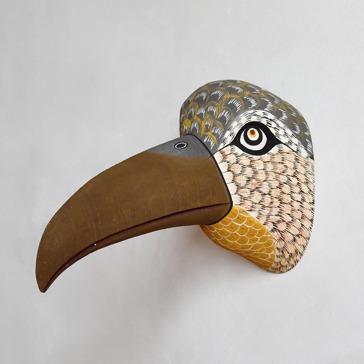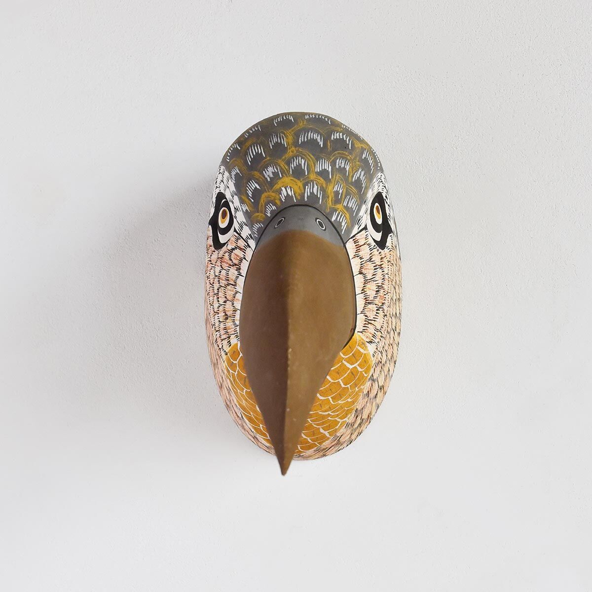 Il faut se rendre dans le nord de l’Argentine pour découvrir le talent et le savoir-faire des artisans Chané. Ces artistes du bois imaginent et sculptent des masques à tête d’animaux. Puis, ils les peignent à la main en utilisant des pigments organiques. Cette tradition se transmet de génération en génération. Autrefois sacrés et employés durant les cérémonies festives, ces décors s’intègrent aujourd’hui dans nos intérieurs. Ce masque trophée à tête d’oiseau orne votre mur avec élégance et originalité. Ses couleurs douces et son joli plumage sont minutieusement illustrés. Pièce maîtresse de votre décoration, vous pouvez disposer ce trophée mural dans votre salon ou bien votre chambre à coucher. Perché sur le mur de votre choix, il invite au voyage avec exotisme et fantaisie. Afin de créer un joli portrait de famille, vous pouvez jouer sur l’accumulation en mixant plusieurs trophées muraux. Oiseaux, jaguars ou encore renards s’harmonisent. N’hésitez pas à varier les tailles et les animaux pour un tableau mural étonnant et réussi. Faciles à suspendre, il vous suffit de les accrocher à l’aide d’’un grand clou.