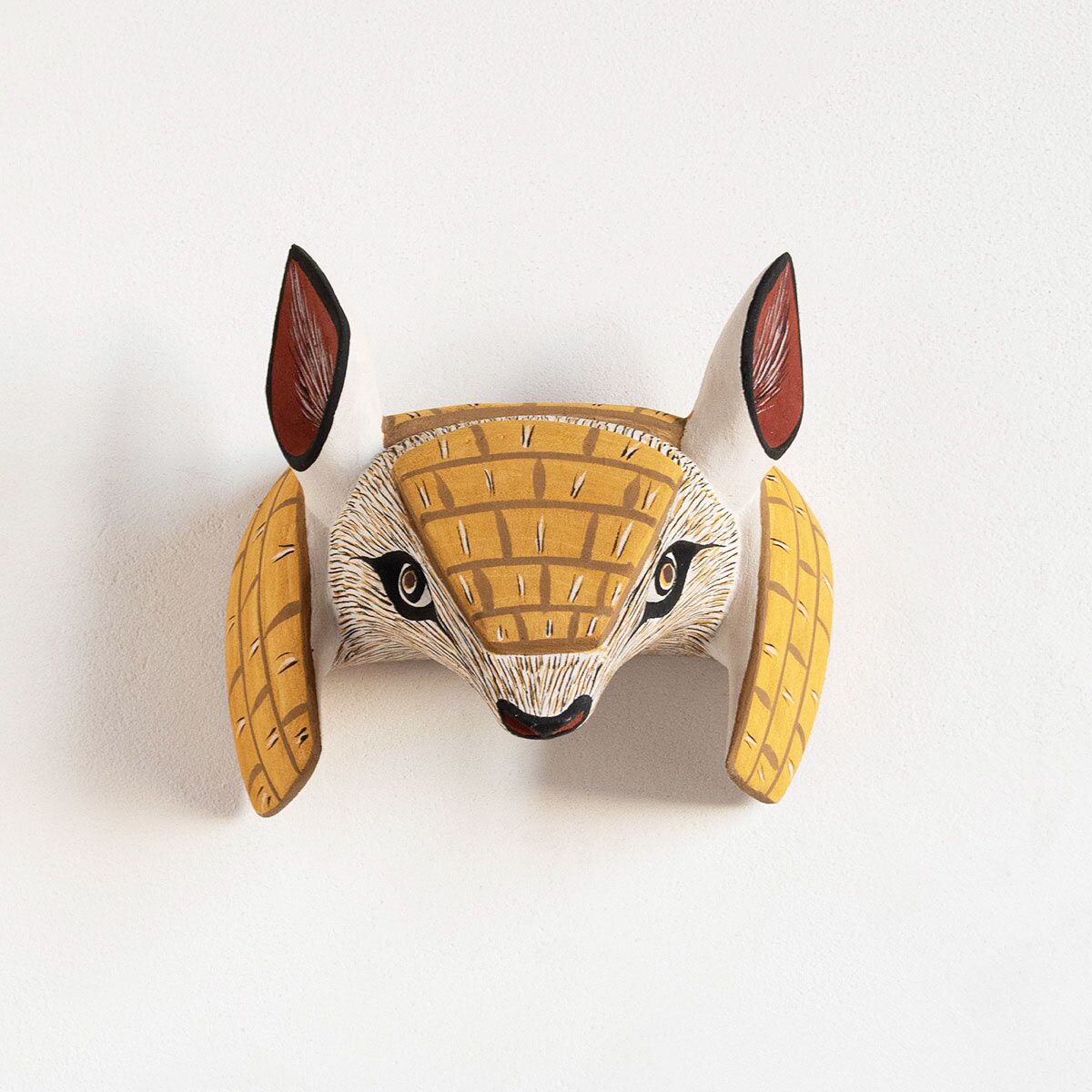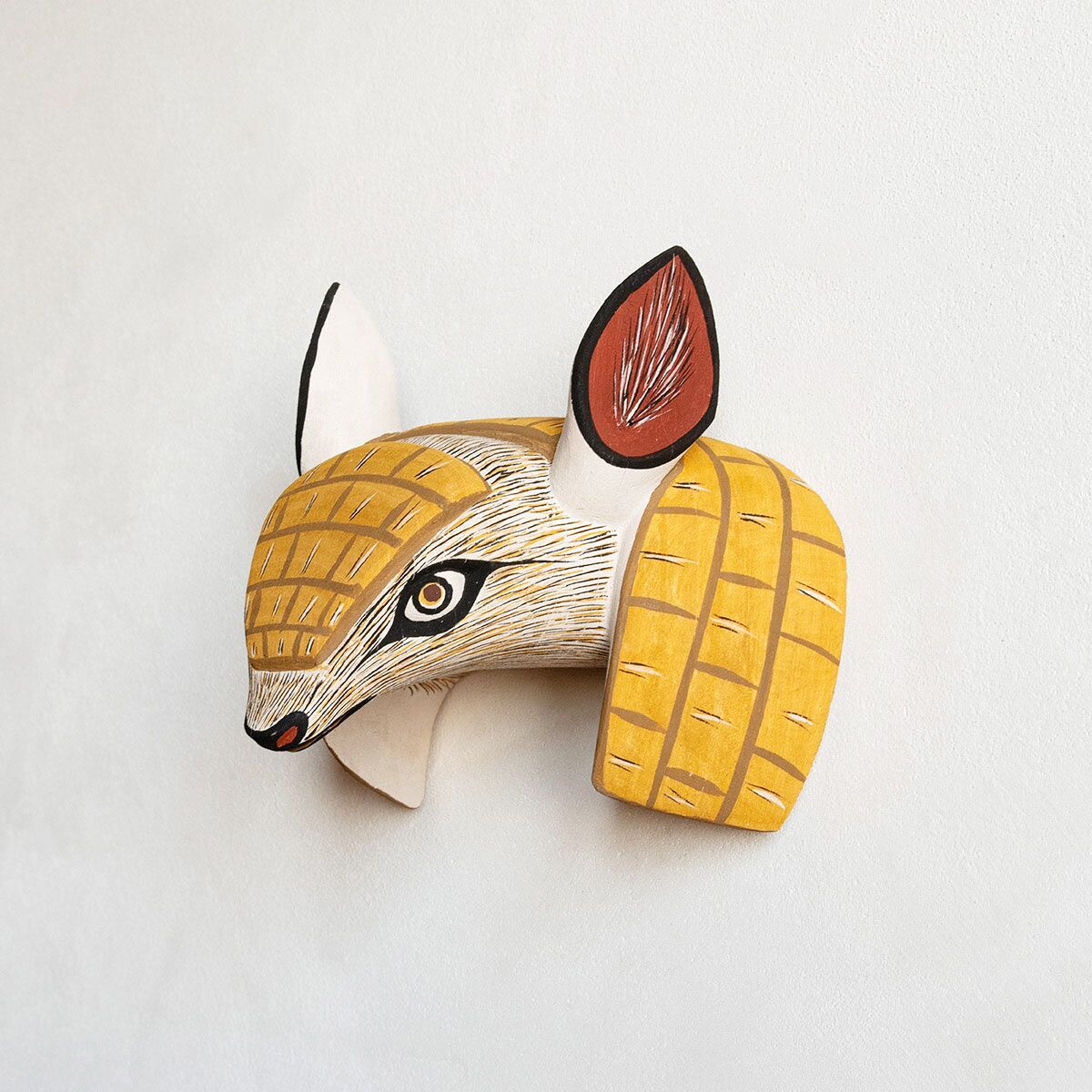 Désirant vous faire découvrir les trésors de l’artisanat argentin, nous sommes partis à la rencontre d’artistes aux mains expertes. Située au nord-ouest de l’Argentine, la communauté Chané regroupe des artisans spécialistes de la sculpture sur bois. Depuis des générations, ils imaginent et façonnent des têtes d’animaux. Employés initialement pour des festivités, elles investissent désormais nos intérieurs. Ce masque Tatou en bois en est une belle illustration. Il devient une décoration originale et unique. Un brin sauvage mais tendre, ce trophée mural orne les murs de la chambre de votre enfant. Il devient un fidèle compagnon avec qui votre petit s’invente de fantastiques aventures. Pour un tableau mural moderne, vous pouvez associer plusieurs trophées en bois. De cette façon, vous créez un décor aux allures sauvages et exotiques. Pour un audacieux portrait de famille.