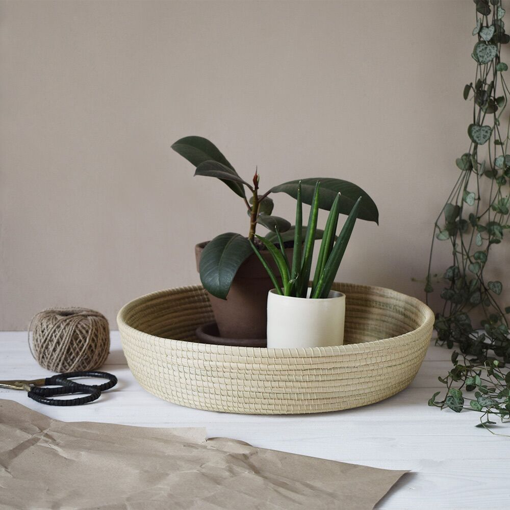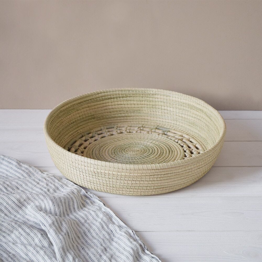 Nous vous proposons ici de découvrir une matière peu connue des occidentaux : le carandillo. Cette sorte de palmier se trouve dans les régions tropicales. Très résistante, cette fibre est la matière de prédilection de la communauté Pilagá. Selon des traditions ancestrales, ces artisans argentins travaillent cette matière première. Ils façonnent de leurs mains habiles des objets de décoration et des accessoires de mode. Cette corbeille ronde L en est un joli exemple. De couleur sobre, vous pouvez facilement l’adopter dans votre déco existante. Elle trouve sa place dans votre cuisine par exemple. Corbeille à fruits, à pain ou encore petit rangement d’appoint : elle saura trouver une place de choix. Vous pouvez également succomber à la tendance en la suspendant à votre mur. Associez plusieurs paniers ronds pour créer une décoration murale originale et naturelle.