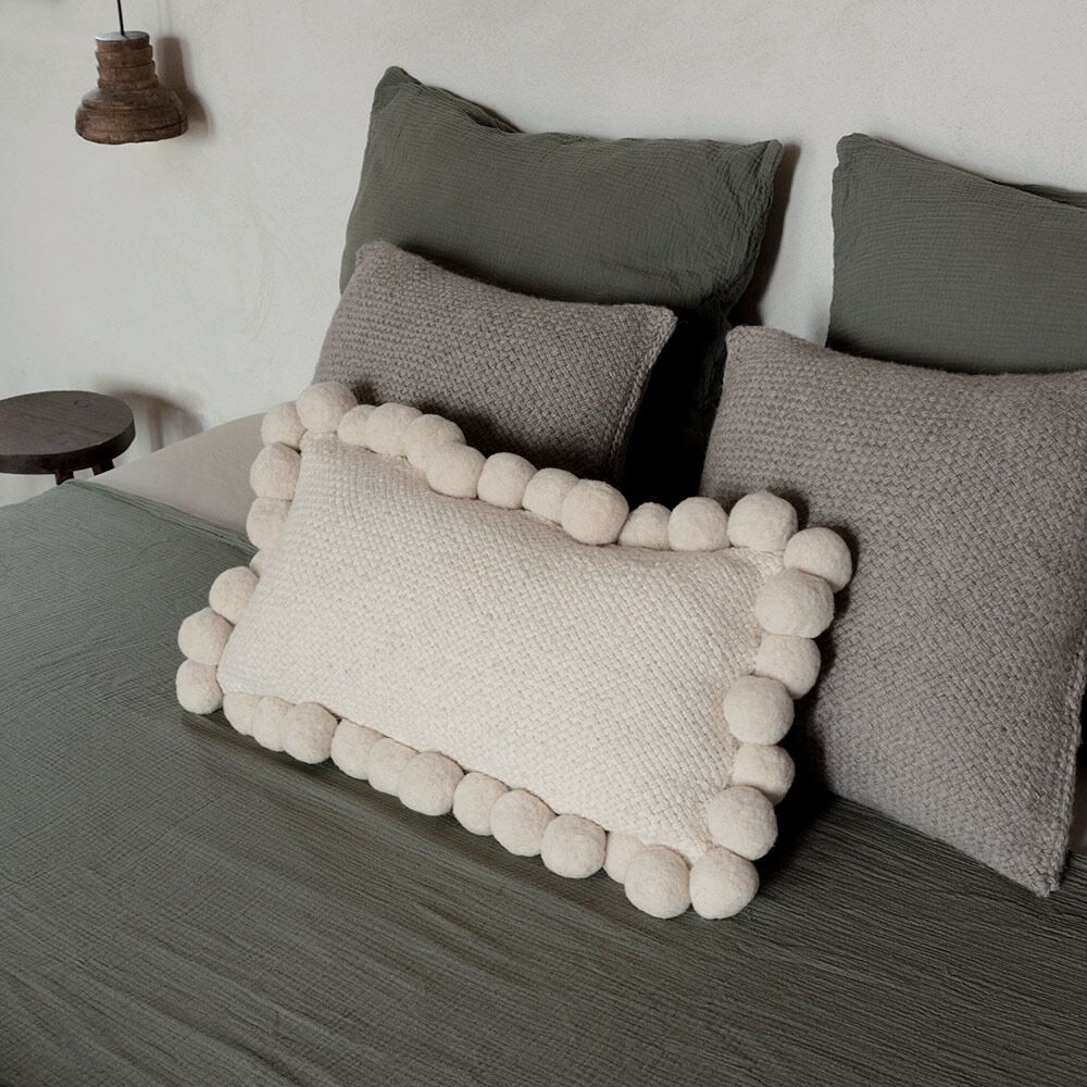 Décoratif, ce coussin à pompons blanc 30×60 offre une douce ambiance bohème à votre intérieur. Tissé à la main par nos artisans argentins, il se compose à 100% de laine de mouton. Sa teinte blanche est obtenue naturellement. Aucun traitement chimique n’est effectué sur cette matière première. Il s’agit de la couleur d’origine du mouton.