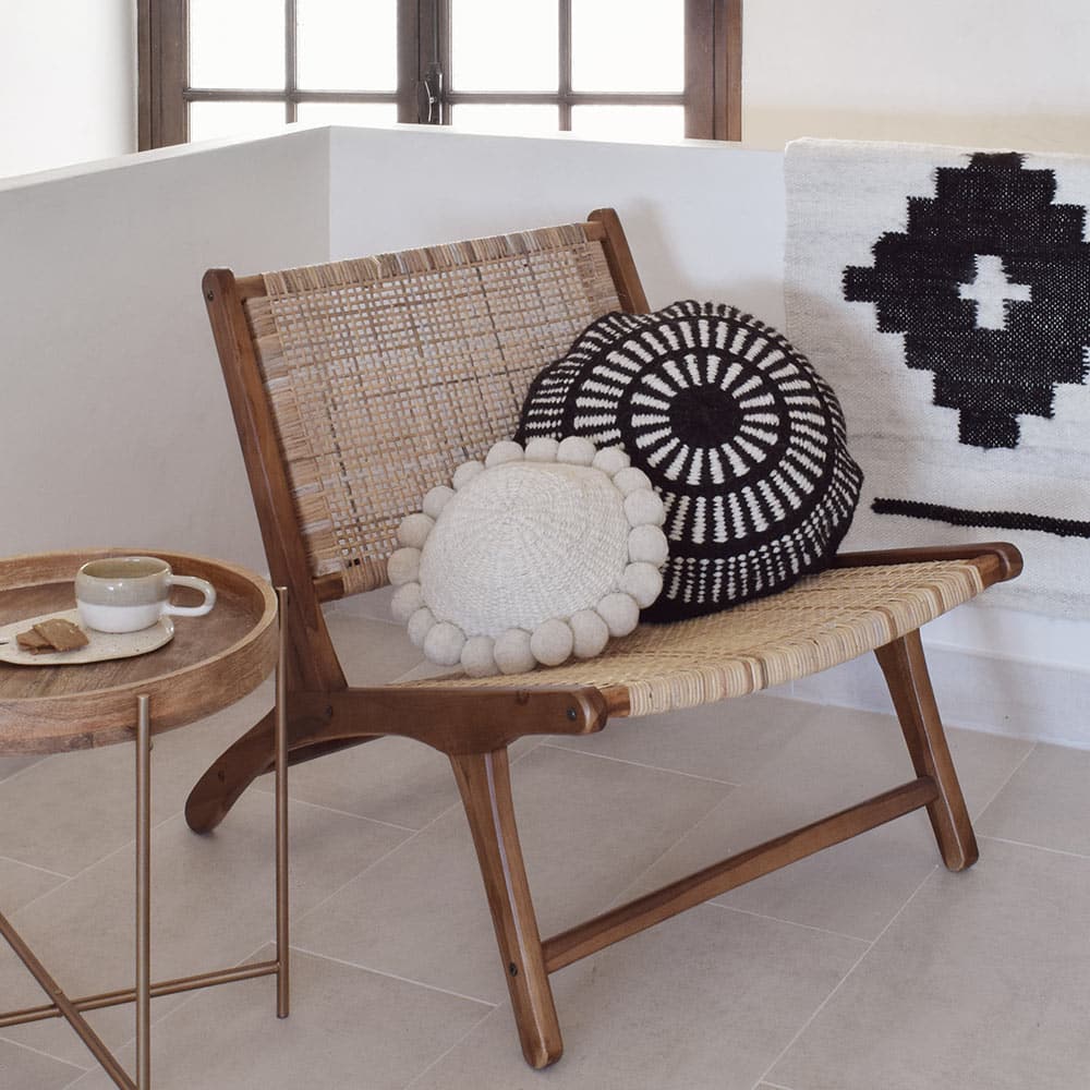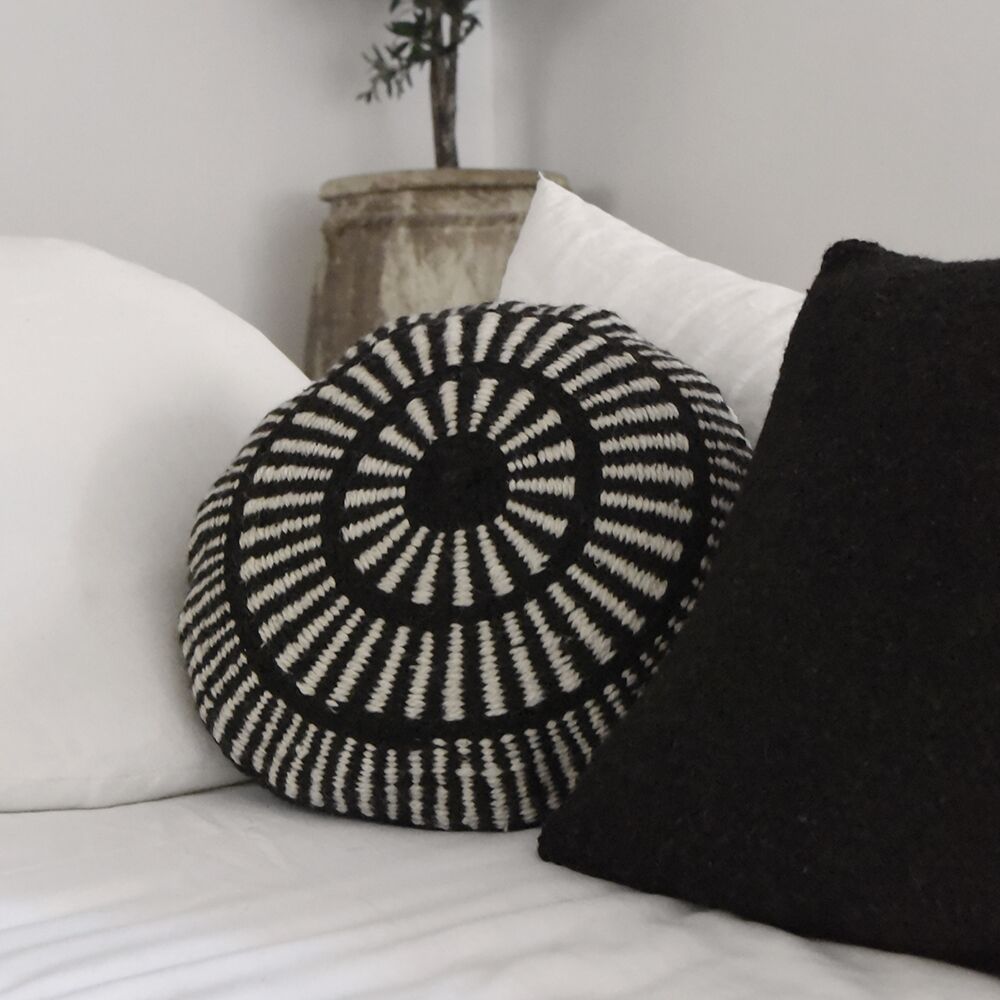 Reflet de l’artisanat argentin, ce coussin rond à motifs noir témoigne du savoir-faire traditionnel et ancestral de la communauté Calchaqui. Situés au nord-ouest de l’Argentine, ces experts tisserands travaillent depuis toujours la laine de mouton. Pièce unique, ce modèle de coussin de décoration en laine se pare de jolis motifs géométriques dans un style bohème. Sa forme douce toute en rondeur vous invite au confort ainsi qu’ à la relaxation. Elle sera parfaite pour agrémenter toutes les pièces de votre maison. Vous pouvez disposer votre coussin ethnique sur votre canapé pour un salon aux allures nomades. Comme un trésor rapporté de voyage. Pour une chambre hygge, posez-le sur votre lit douillet. Moelleux et également réconfortant, cet accessoire déco sera sublimé aux côtés d’autres modèles de notre collection textile. Ronds, carrés ou bien rectangulaires : amusez-vous en variant les formes et composer un coin détente ultra-cosy.
