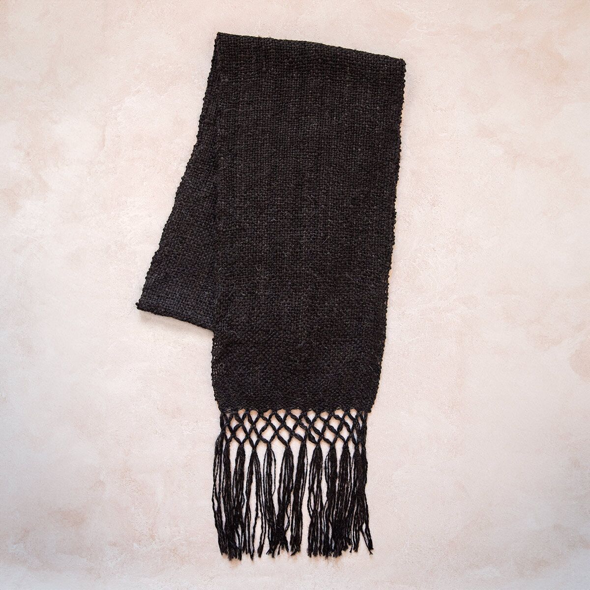 Souhaitant partager avec vous les plus belles pièces de l’artisanat argentin, nous sommes partis à la rencontre de la communauté Kolla. Situés au nord-ouest de l’Argentine, ces tisserands travaillent la laine de lama depuis des générations. Leur savoir-faire traditionnel vous garantit des produits hautement qualitatifs et uniques. Ils maîtrisent l’ensemble du processus de création : élevage, tonte, filage et tissage. Toutes ces étapes se réalisent à la main selon des techniques traditionnelles. D’autre part, les couleurs proposées (blanc, marron et noir) restent celles d’origine sans ajout de teinture ni produit chimique. 100% naturels, nos accessoires s’inscrivent ainsi dans une mode éthique et durable. Ultra-chaude et légère, la laine de lama assure une parfaite protection grâce à ces grandes qualités thermiques. Véritable cocon de douceur, cette écharpe en laine est agréable à porter au quotidien, en jeté sur l’épaule ou autour du cou. Paré de jolies franges délicatement travaillées, ce châle noir souligne votre silhouette et agrémente vos tenues. De couleur neutre, il se fait discret vous permettant ainsi de le porter en toute occasion.